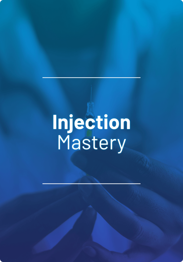 For live attendees, there is hands-on guided training on each of the injections below. You will also receive the certificate of completion after attending this course in person.
